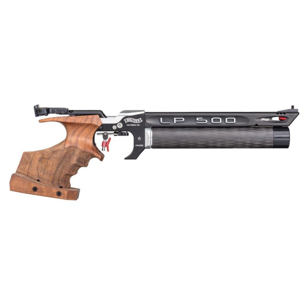 With an air pistol, one arm does everything. The gun is held extended in a single hand with no contact with the body. Every movement — your heartbeat, your breath, a slight muscle tremor — is visible on the target.