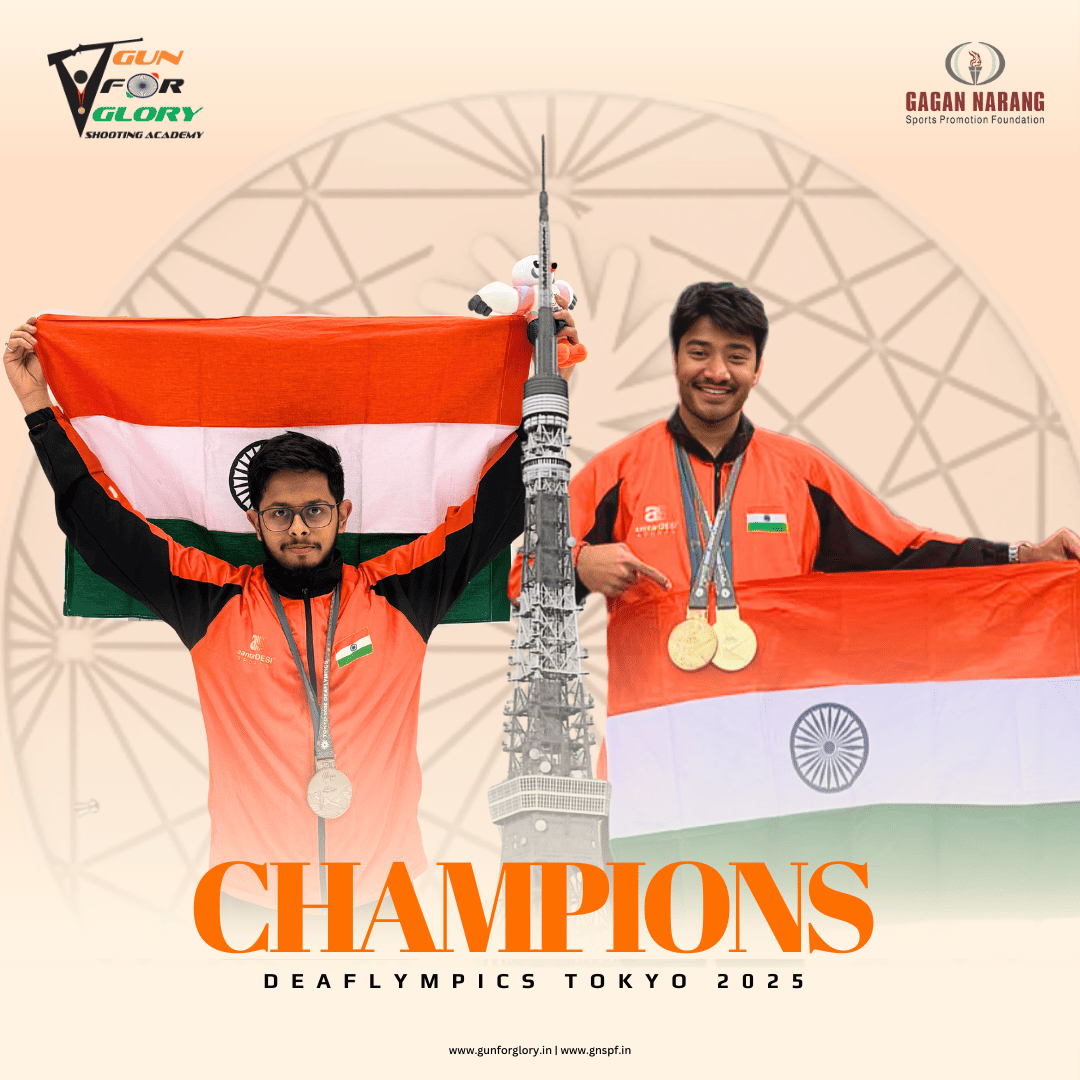 The year’s most defining moment came at the prestigious Tokyo Deaflympics 2025, where our athletes rose to the occasion and delivered a performance that made the entire nation proud. Competing against the world’s finest, our champions returned with 4 Medals — 2 Gold, 1 Silver & 1 Bronze. It was a showcase of nerves of steel, razor-sharp focus, and the champion mindset that Gun For Glory Shooting Academy instils in every athlete.