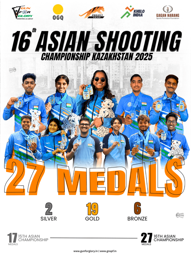 With 9 Olympians, 390 international medals, and over 3,000 national-level shooters, Gun For Glory continues to shape India’s shooting landscape. Yet, our true success lies in every athlete who gains confidence, focus, and self-belief — embodying the spirit of excellence that defines our academy.
